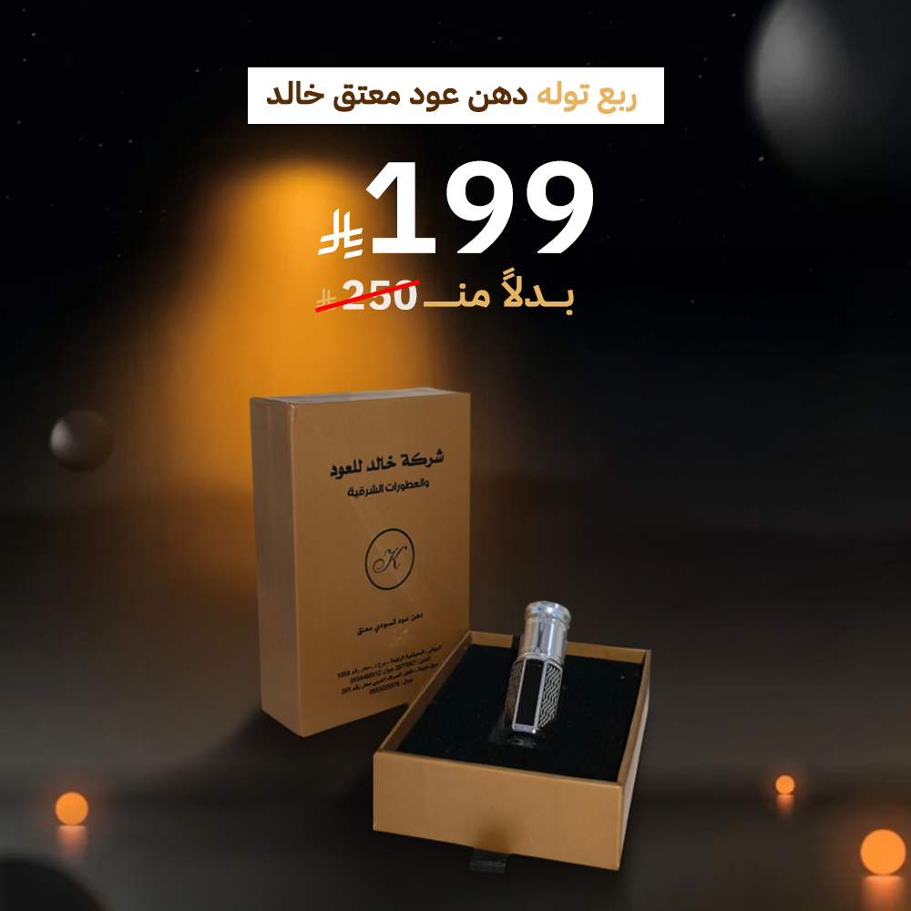 اقتني الآن دهن عود معتق خالد من متجر خالد للعود واستمتع برائحة ملكية تعبّر عن هويتك الأصيلة.